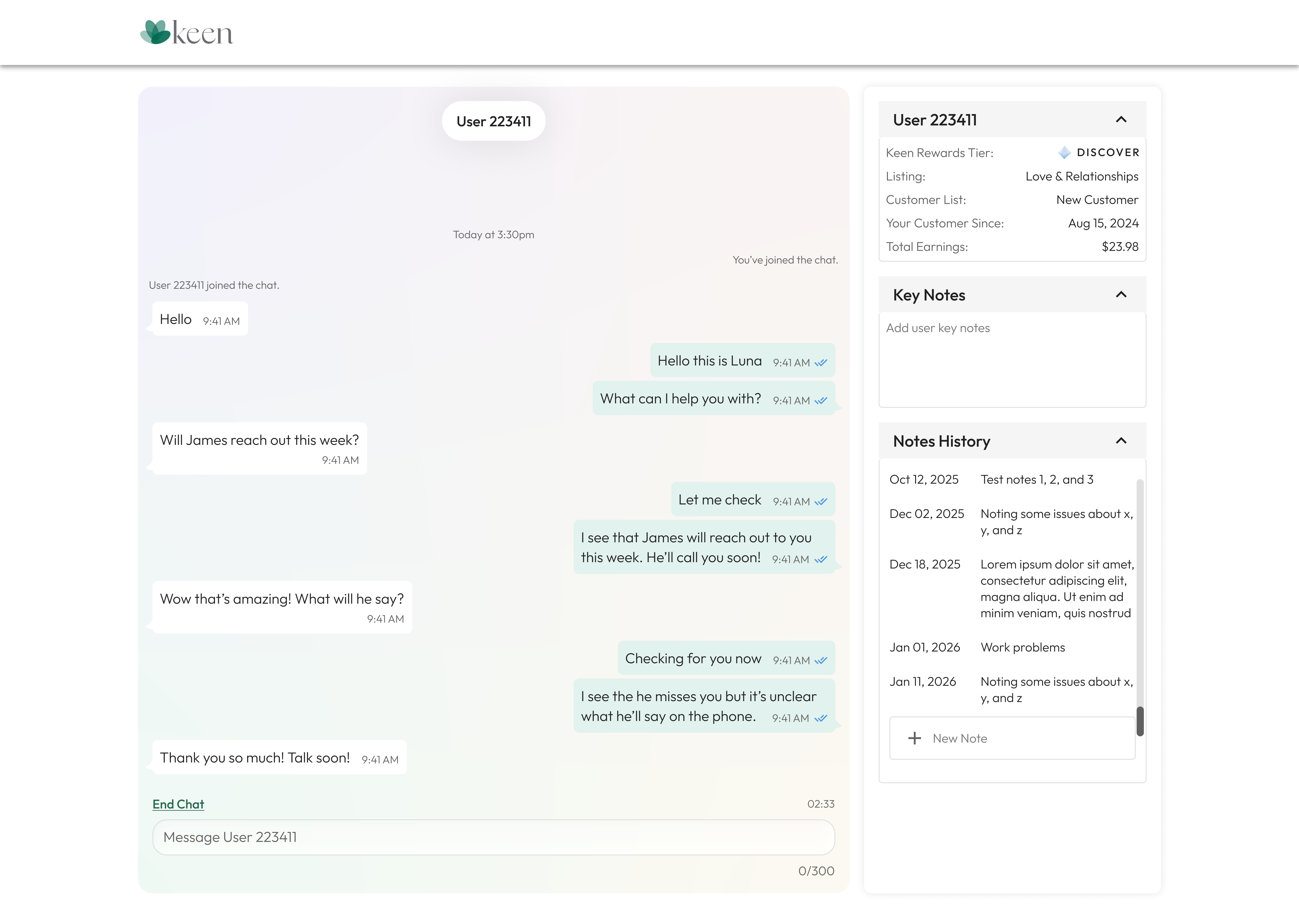 - User info now shows their Keen Rewards tier